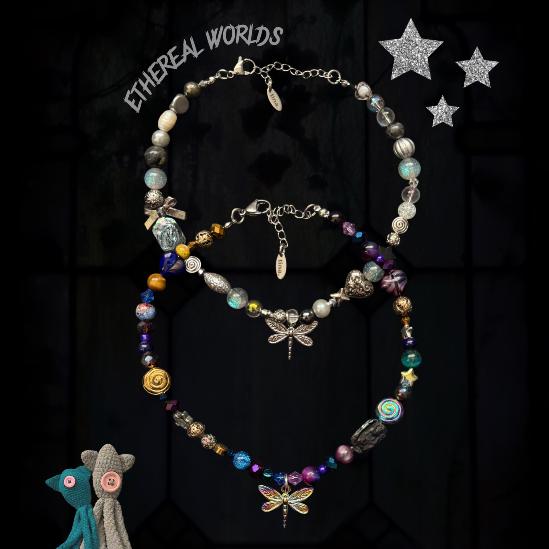 Both necklaces are adorned with stainless steel charms, highlighting their magical character.Length: … cm (adjustable upon request).