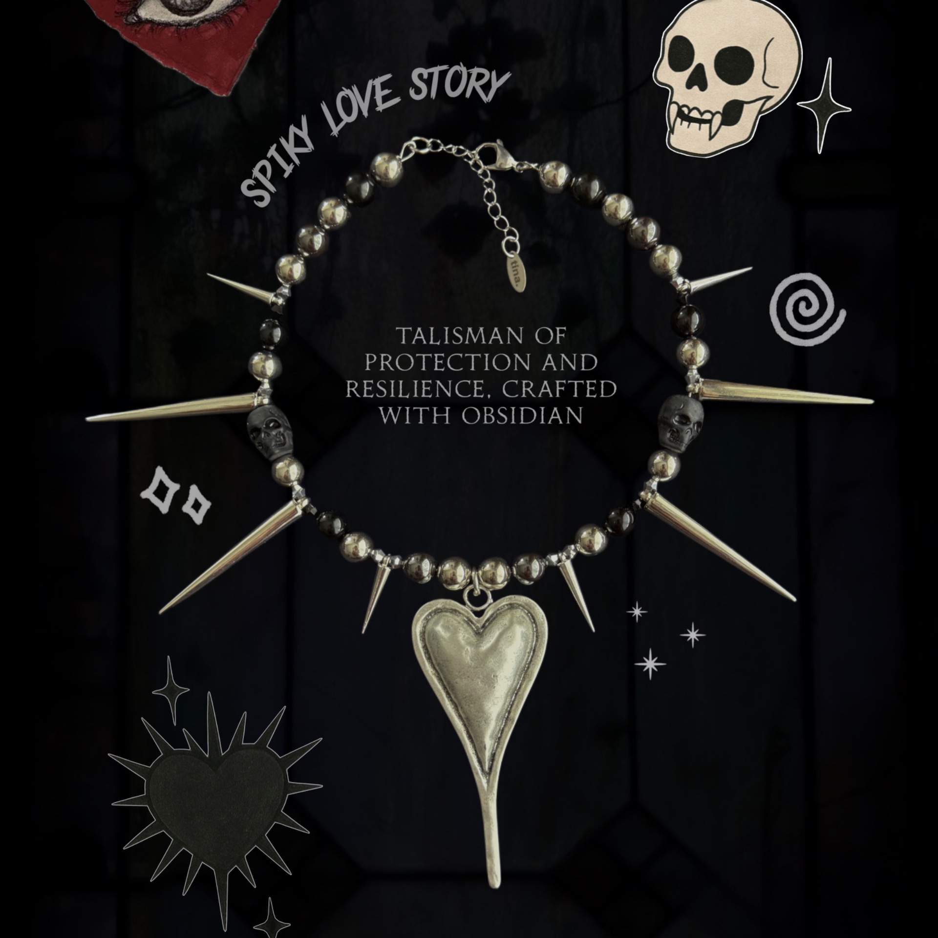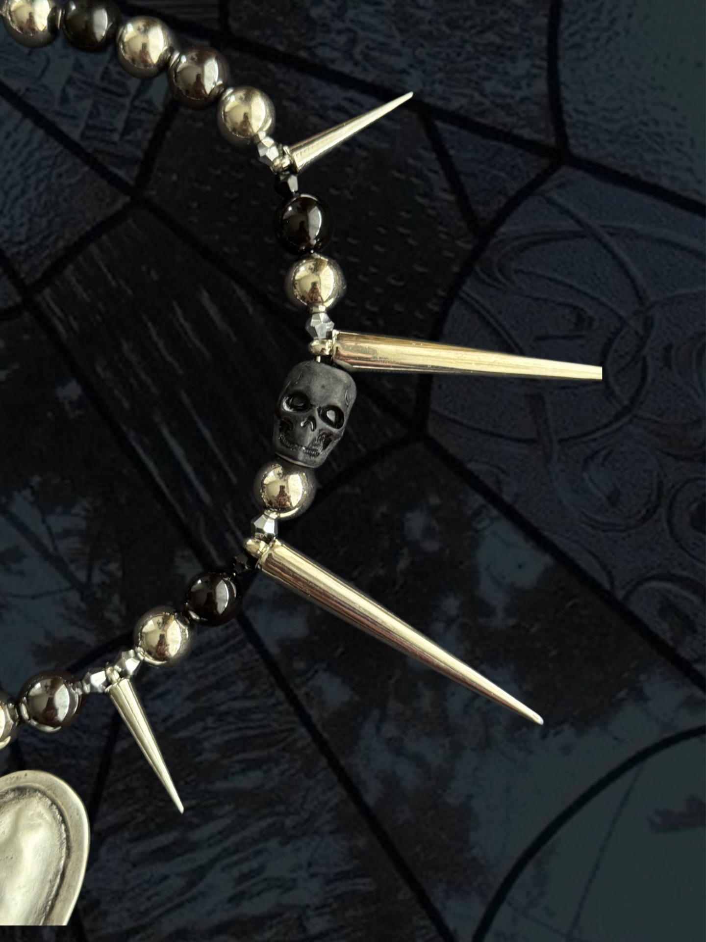 This necklace is part of the Halloween collection. It features obsidian – the stone of protection that removes negative energies and brings strength and resilience. Obsidian helps reveal the truth, shields against outside influences, and supports inner stability. Its energy acts as a protective shield, giving the courage to face challenges. Components are made from Surgical Steel.